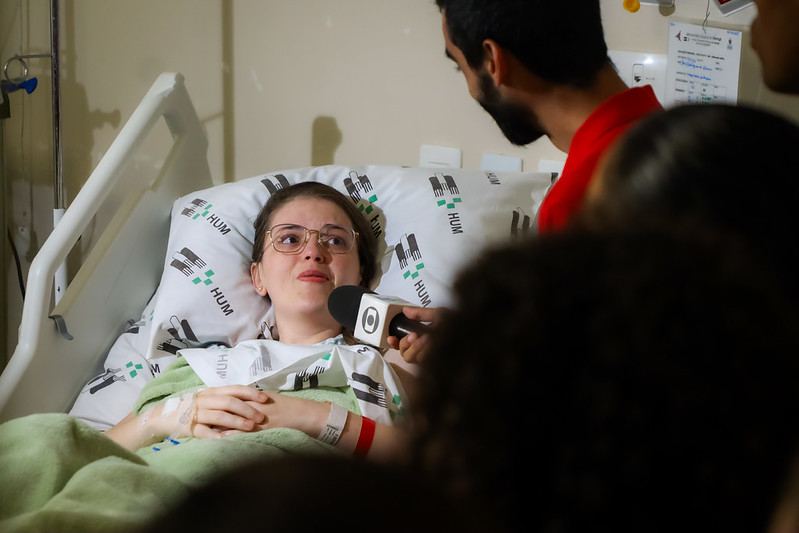 A programação não terminou no hemocentro. Após a doação, o grupo seguiu para o Hospital Universitário (HU), onde levou música e palavras de esperança a pacientes, familiares e profissionais de saúde. O momento emocionou quem acompanhava a recuperação de um ente querido, como a estilista Tatiane Martins. Ela visitava o pai internado e já estava de saída quando ouviu os louvores e decidiu acompanhar os alunos. “Eu tinha um compromisso no comércio, mas não resisti a esse coral lindo e contagiante. Agora, vou abrir mão do compromisso para ficar aqui com eles”, declara sorridente.
