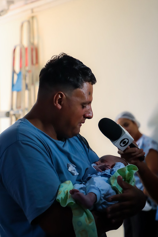 Pelos corredores, a apresentação dos estudantes chamou a atenção e arrancou lágrimas e sorrisos, transformando a rotina hospitalar por alguns instantes. Nathan Alves estava com o filho Gael, nascido há apenas dois dias, quando ouviu as músicas e se aproximou para acompanhar de perto. Emocionado, ele relatou a experiência: “Eu estava no quarto e ouvi eles cantando. Falei para minha esposa que iria até lá, porque algo estava me chamando. Me aproximei do grupo e comecei a sentir algo especial e chorei sem parar”, conta o pai emocionado com o filho nos braços.